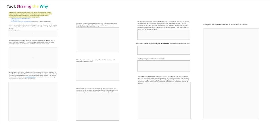 The “Sharing the Why” tool provided a structured approach to preparing contextual explanations: